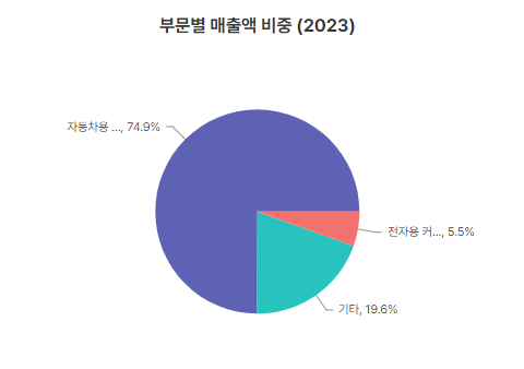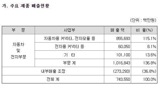 매출의 대부분이 자동차용 커넥터임을 알 수 있음