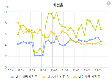 매출채권회전율, 재고자산회전율 플랫하게 유지