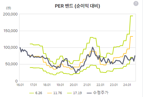 최근 주가가 오르긴 했으나 PER밴드기준 하단에 위치