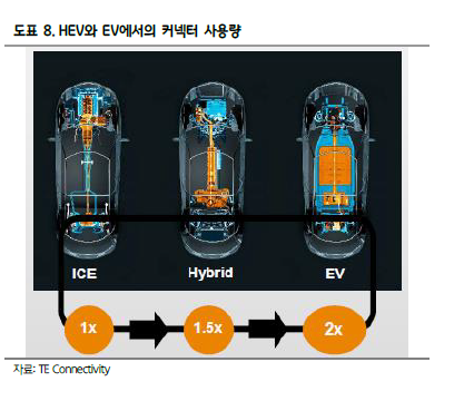 전기차 생산에 커넥터가 상대적으로 더 많이 사용된다는 점을 고려하면 글로벌 전기차 시장 성장요인으로 차량용 커넥터 수요도 증가하고 있는 것으로 파악