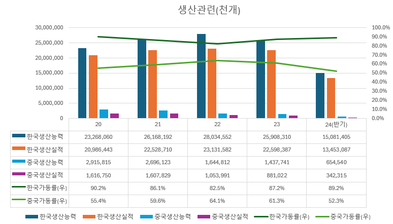 다만 사업보고서에 따르면 한국과 중국을 제외한 다른 지역에서의 생산은 매우 작아 표시하기 애매하다고 되어있음