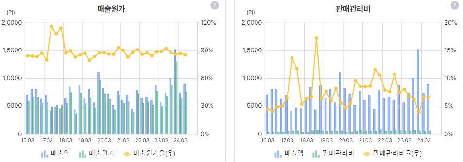 매출원가 및 판관비 플랫하게 유지중인 것으로 보인다