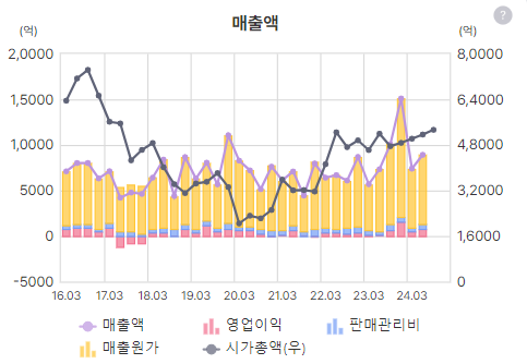 매출에선 고정익의 상승이 뚜렸이 보인다.