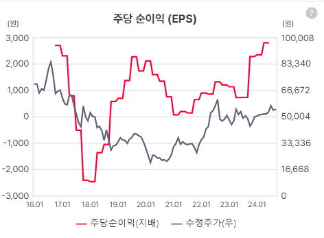 다만 EPS는 상승세이다 여기서 뚫고 올라간다면 주가의 상승을 기대해 볼 수도 있을 것 같기도 하다