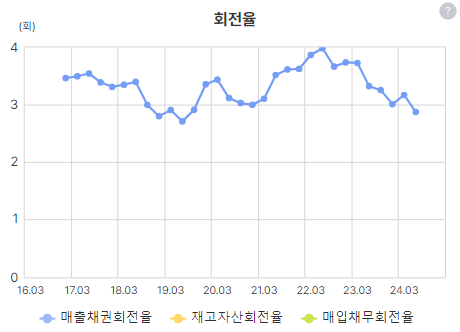 재고자산은 없는 게 맞는 것 같고, 매출채권 회전율은 플랫함