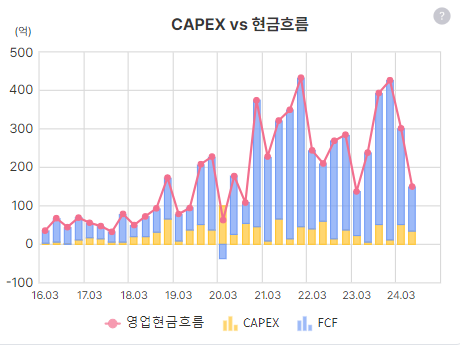 CAPEX는 서버 증설 같은건가? 어쨌든 잉여현금흐름 내에서 전부 커버 하는 중