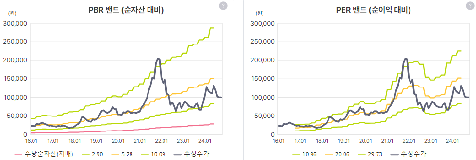 주가는 밴드상 높게 위치하지 않음