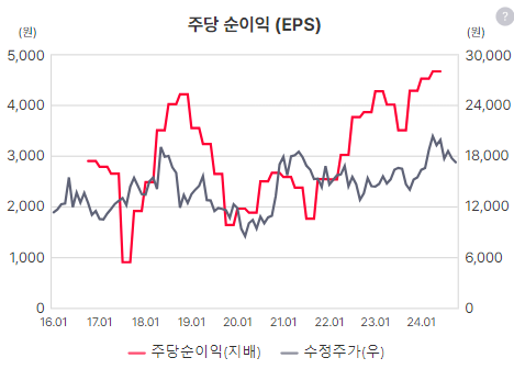 4분기 평균으로 봤을 때는 EPS가 증가세이나 최근 이익이 꺾여서 평균 EPS도 좀 꺾이지 않을까 싶음