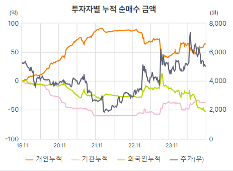 외국인과 기관의 매수세는 보이지 않음