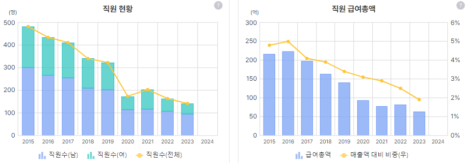 성장하는 회사라면 왜 직원과 급여총액이 줄까... 이것도 체크 필요할 듯 하고