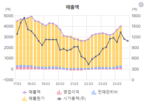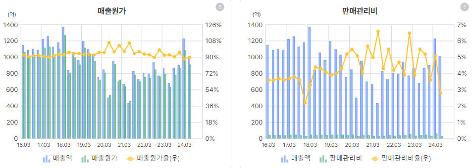 매출원가율이 90%... 판관비는 약하락세인것 같긴한데
