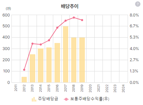 원래는 배당율이 높았던 기업이었는데 19년도부터 배당 없음...