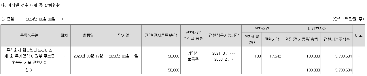 미상환 전환사채 1000억 있음 시총에 1/5 수준