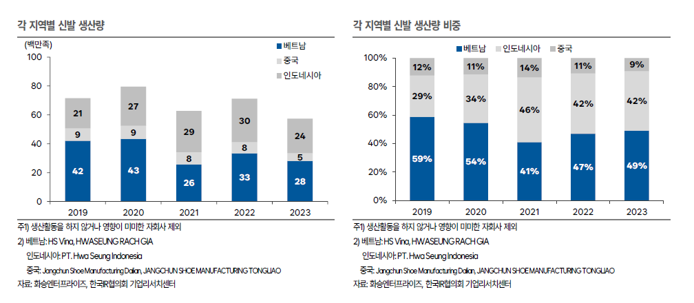 화승엔터프라이즈는 해외 현지 법인에서 운동화를 생산 후 화승인더스트리를 통해 아디다스에 공급하는 운동화 ODM
