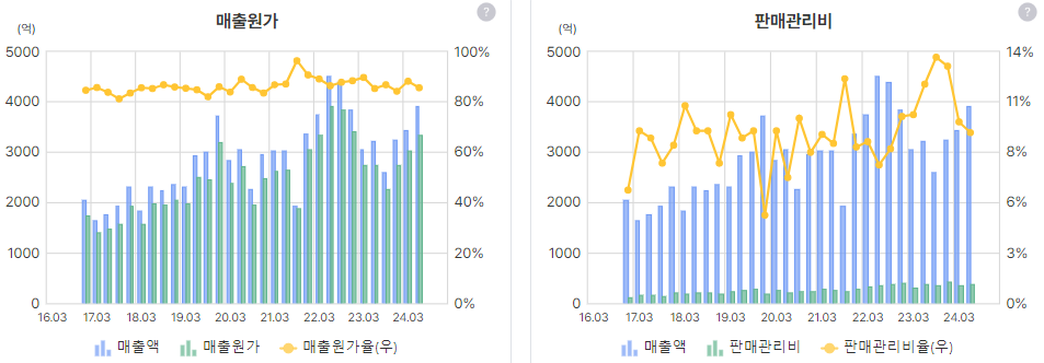 매출총이익률, 판관비율 플랫하다고 보여짐