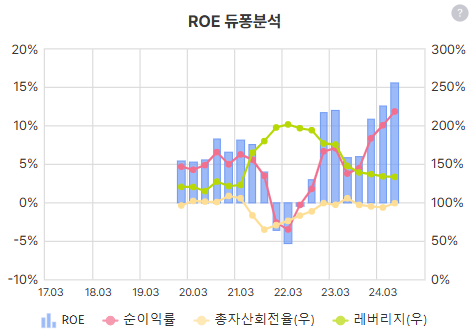 부채비율 낮은데 ROE 점점 상승 중 (4분기 누적)