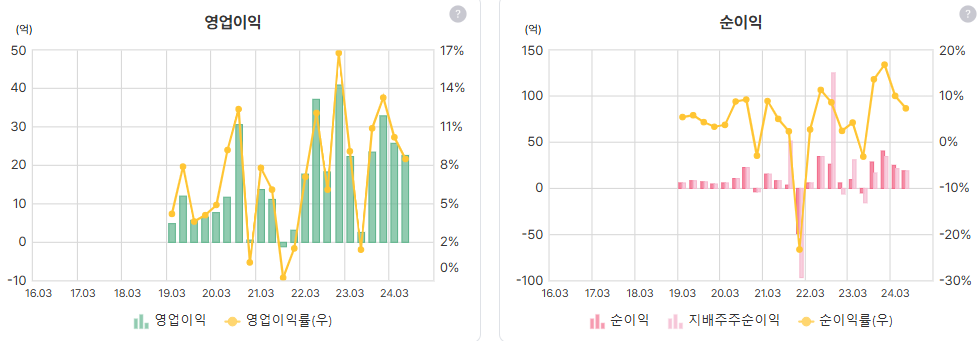 괜찮은 기업인 것 같긴한데 한 방이 없는 느낌이다. 친환경 합성피혁이라고 하지만 기술적 해자가 높은지도 잘 모르겠다. 경쟁사에서도 도입할 수 있지 않을까. 펀더멘털도 계속 꾸준히 올라오는 게 아니고 영업이익률 역시 그리 높지 않다. 의류 가죽 관련 기업이라 그렇긴 하겠지만서도. 뭔가 아쉽다. 모니터링 제외한다.