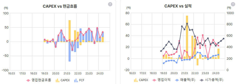 21년에 큰 투자가 한 번 있었고 그 뒤로 CAPEX는 크지 않음