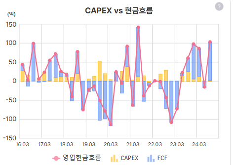 CAPEX가 별로 많지 않아보이는데, 현금흐름이 좋지 않을땐 무슨 일이 있었는지 의문