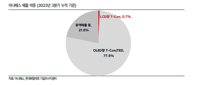 출액 기준 매출 비중은 OLED T-Con/TED 77.5%, LCD T-Con 0.7%, 기타 21.8%로 구성되었다.