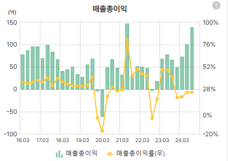 매출은 늘어나는데, 매출 총이익률은 그다지 늘지 않는 이상한 모습이 보이긴 함