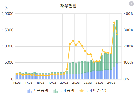 최근 부채비율이 급격하게 늘어남. 다른 기업을 인수한건지 체크 필요