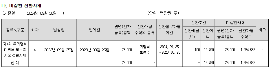 전환사채 관련 내용이 있어서 찾아보니 역시나 좀 좋지 않음. 이것이 주가 저평가의 이유같기도