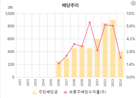 배당 매우 괜찮음 24년에도 배당을 좀 한것으로 보임