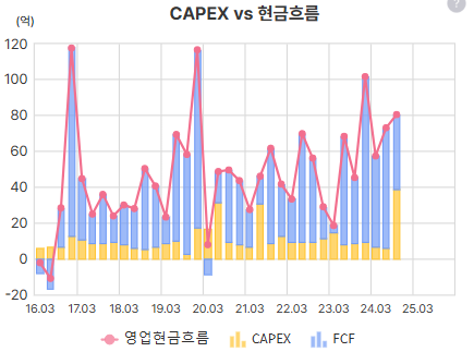 현금흐름 내에서 집행하는 CAPEX. 최근 3분기 집행 CAPEX는 공장자동화