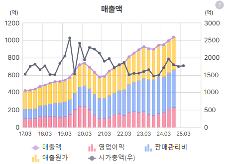 - 24년도 및 25년 실적예상(cf. 23년 매출 946억, 영업이익 167억, 영업이익률 18%)