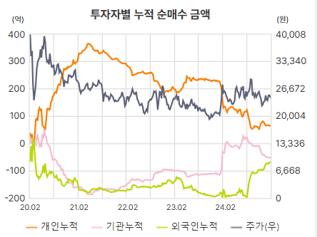 특별한 매수세는 보이지 않고 있음. 최근 외국인이 좀 사는 것처럼 보임