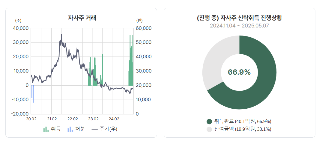 자사주 취득했으나 꾸준하지 않음 최근도 취득중이긴 함