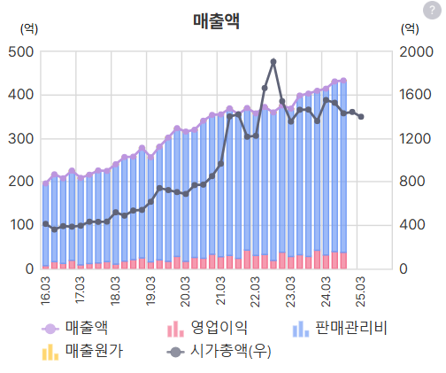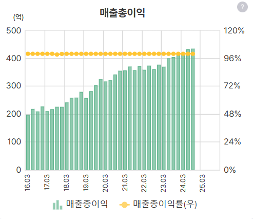 매출 총이익률은 고정, 이유가 있나봄. 매출원가율은 0%