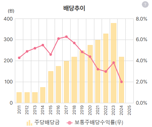 배당금이 꾸준히 늘어나는 배당주. 24년 배당은 마무리가 안된 듯?