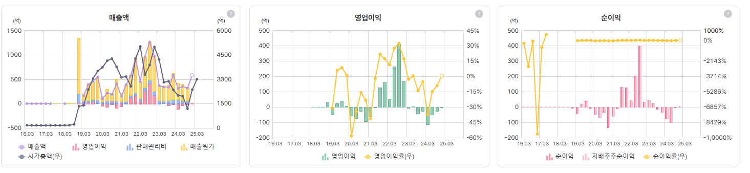 적자기업으로 딱히 상세히 분석할 필요는 느껴지지 않는다. 그래도 봐보면, 제일 좋을때 영업이익률은 분기기준 32%였다.