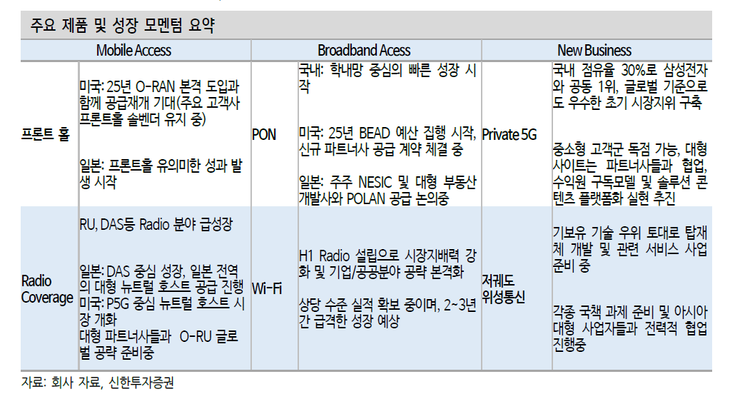 인 통신장비 이외의 위성, Private 5G 등 중장기 모멘텀도 충분
