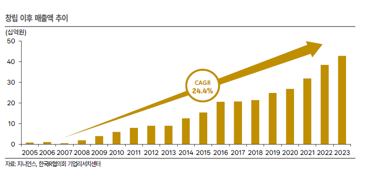 솔루션을 개발 및 판매한다. 동사는 2005년부터 2023년 연평균 매출액 성장률(CAGR) 24.4%를 달성했으며 설립