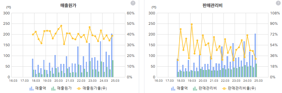 플랫하게 유지 다만 매출이익은 증가 중