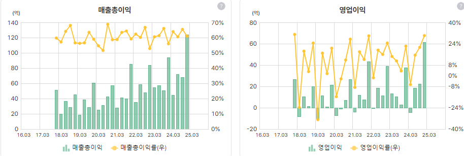 이후 19년간 지속적으로 영업이익 흑자를 기록하고 있다. 2017년 코스닥 시장에 상장한 이후 2023년부터 2년 연속