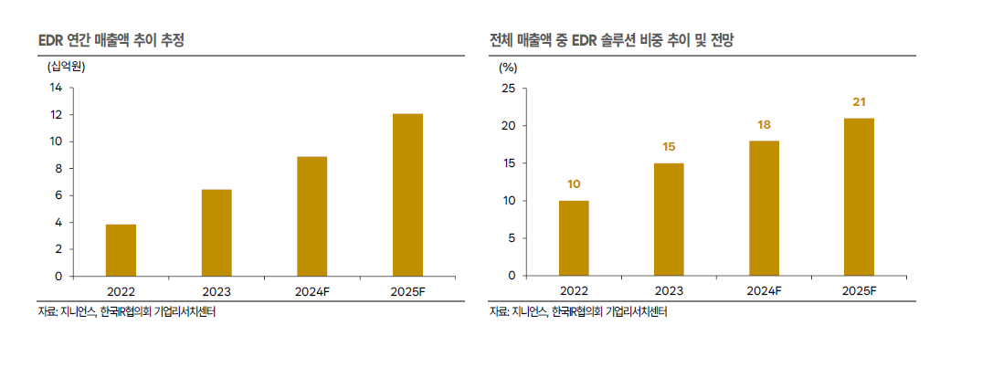 10% 후반 비중을 차지하며 전년 대비 +38% 이상 성장할 것으로 예상한다. 2025년 EDR 매출액은 100억원을 상회