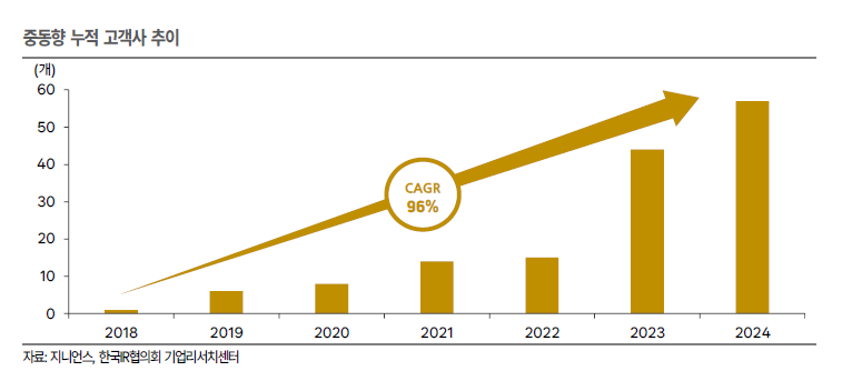 어 중동/북미 시장에서 신규 고객사를 빠르게 확보하며 성장 중. 동사는 2025년 중동 지역에서