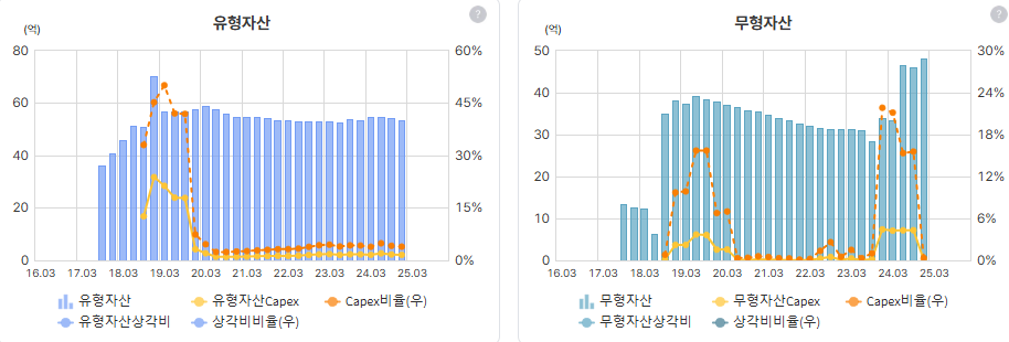 최근 CAPEX투자 없었고 무형자산도 줄어듦